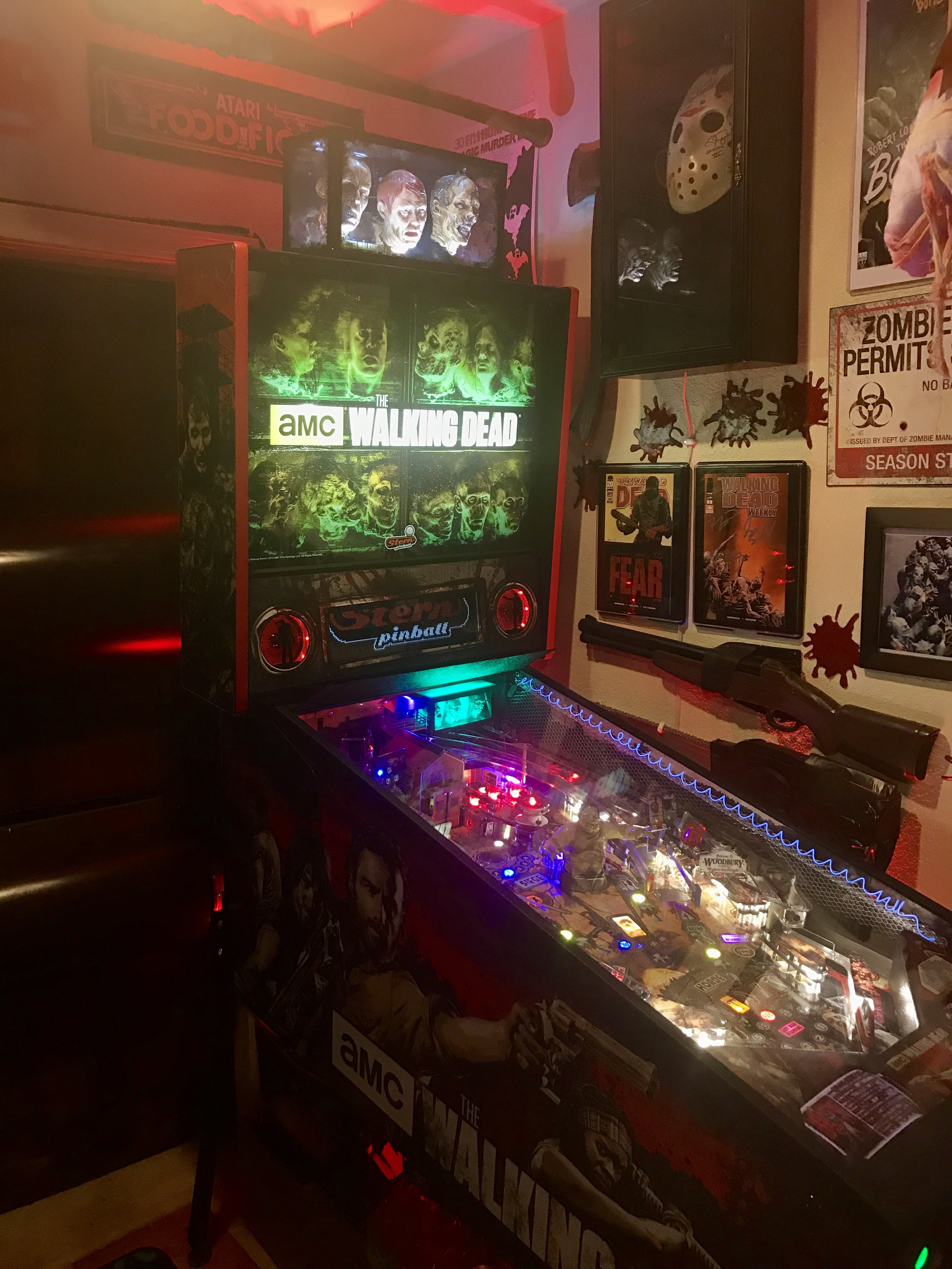 Given my love of all things horror/Halloween, it should come as absolutely no surprise that I’m a big fan of The Walking Dead. I’ve been watching the show on AMC since day one, and have read the entire comic book series on which the show is based. When I heard that Stern was going to release a pinball machine based on the TV series, with John Borg designing it and Lyman Sheets handling the code, adding this one to my collection was the proverbial “no brainer.” The only downside was that in order to come up with the funds, I had to give some of my games the Lucille treatment. Eenie… meenie… miney… mo.