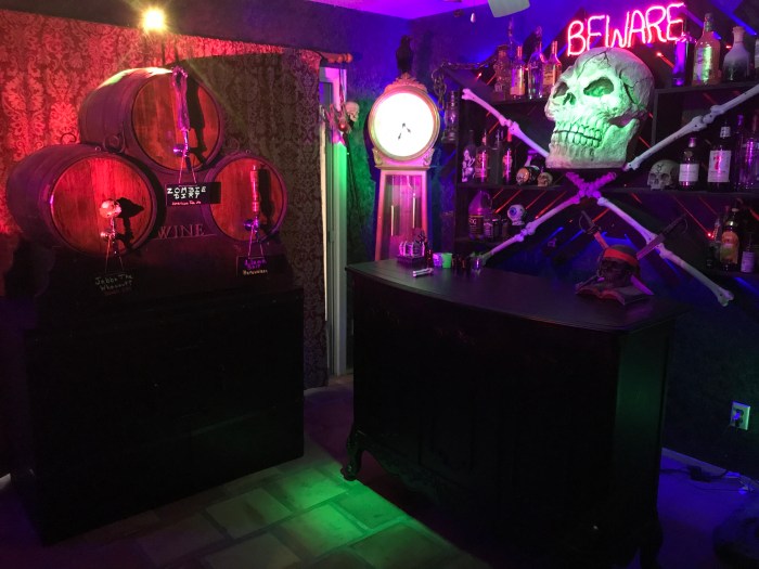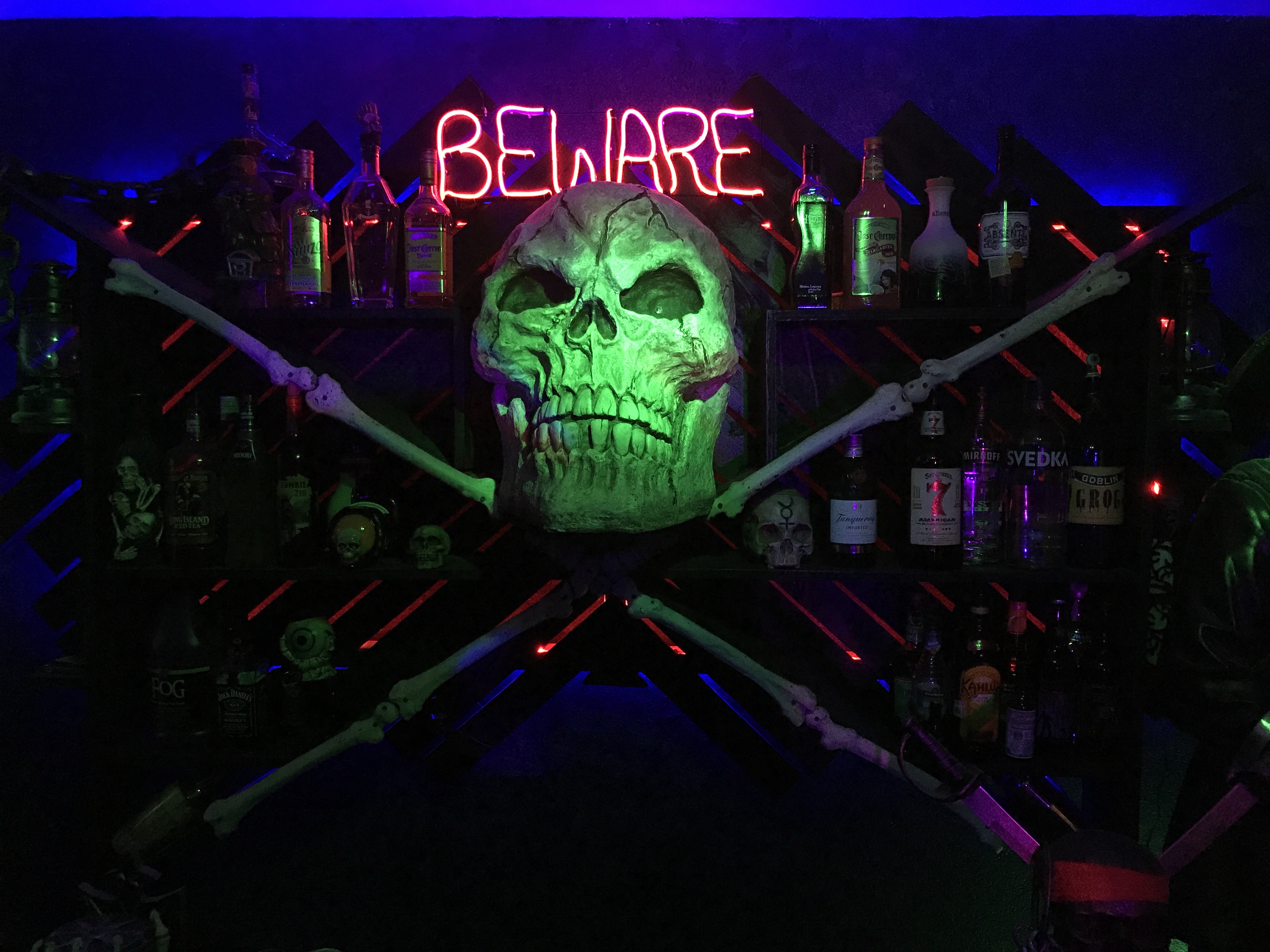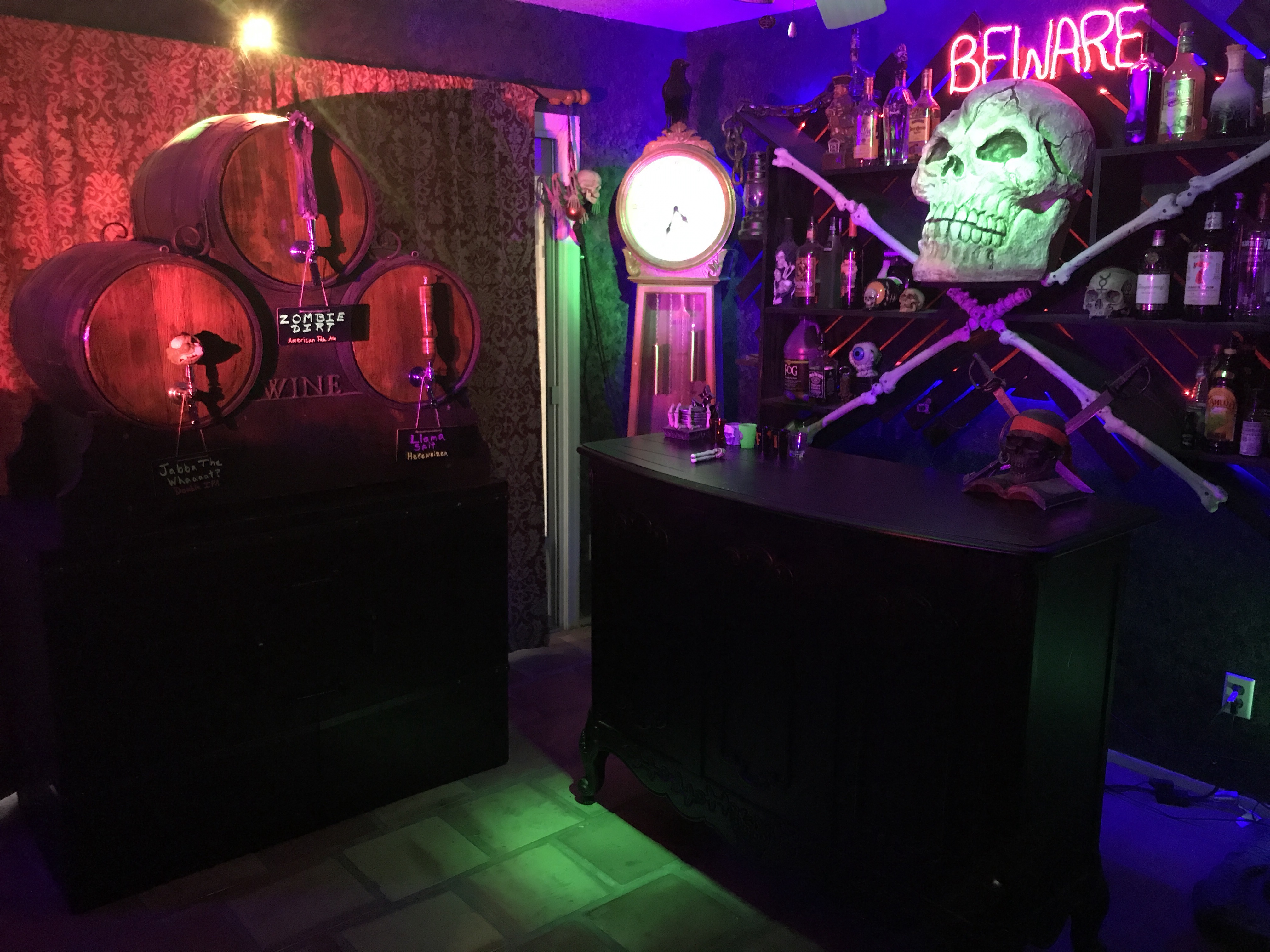 Along with wanting to someday own an arcade game, I always thought it would be cool to have a pirate bar in my house. The initial setup was pretty straightforward: a pirate flag, a bar, and a life-sized pirate guy to stand next to it. That was pretty much the extent of the setup for several years.